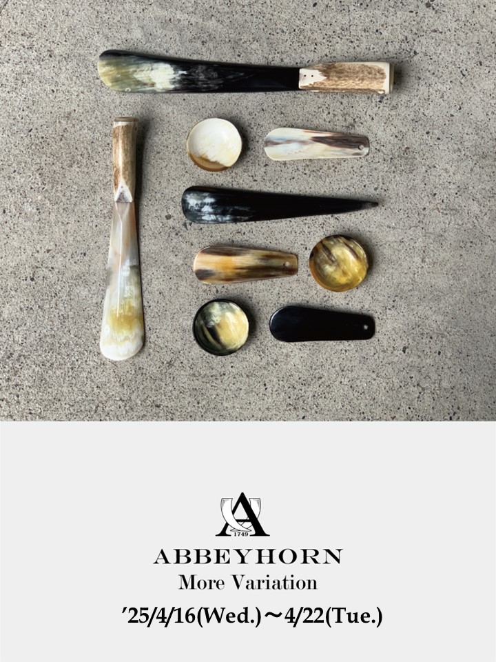 シューホーンやレザースティックの取り扱いでご存じのお客さまも多い【ABBEY HORN (アビィホーン)】のモアバリエーションを4/16(水)から4/22(火)の日程で開催します。