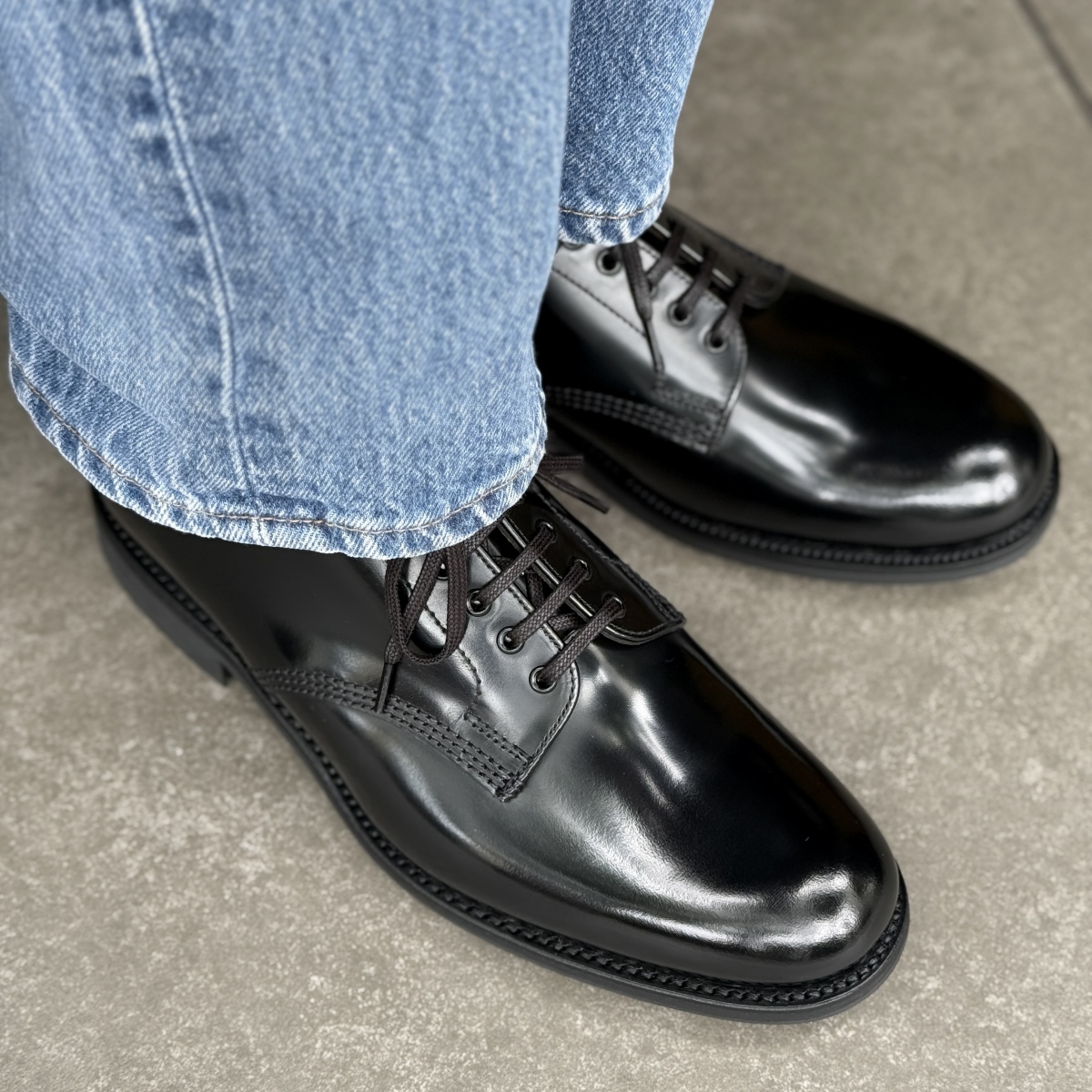 軍の将校や士官が式典などで着用する靴をモチーフにしたプレーントゥの「オフィサーシューズ」
