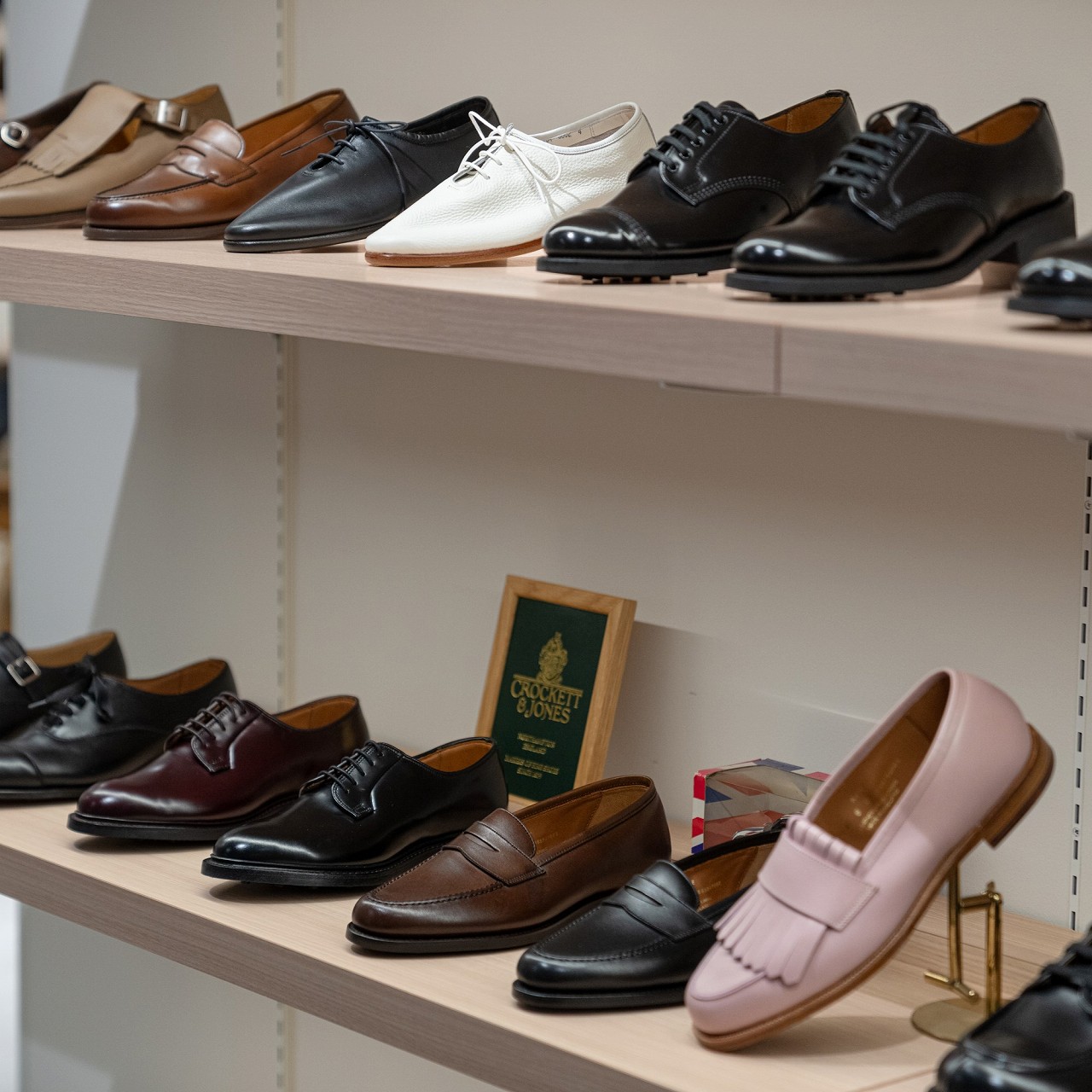 英国の伝統と格式を今に伝えるエドワードグリーン、クロケット&ジョーンズといった老舗ブランドをはじめ、現代的な感性で独自の美意識を体現するカルミーナやサンダースなど、多様な個性を持つブランドを幅広く取り揃えております。