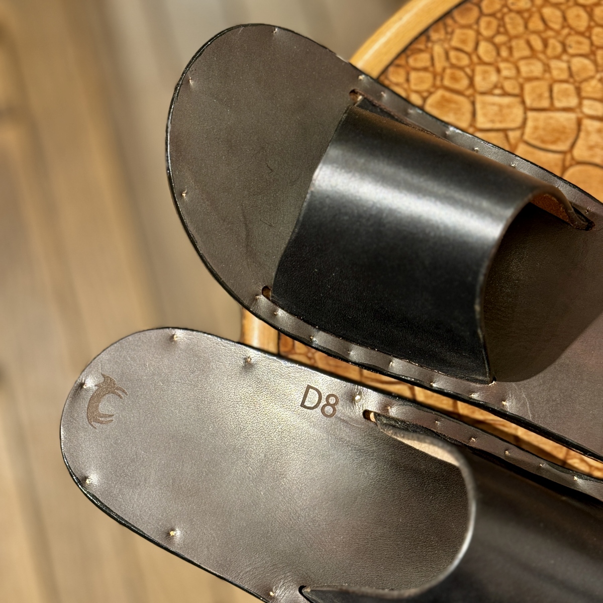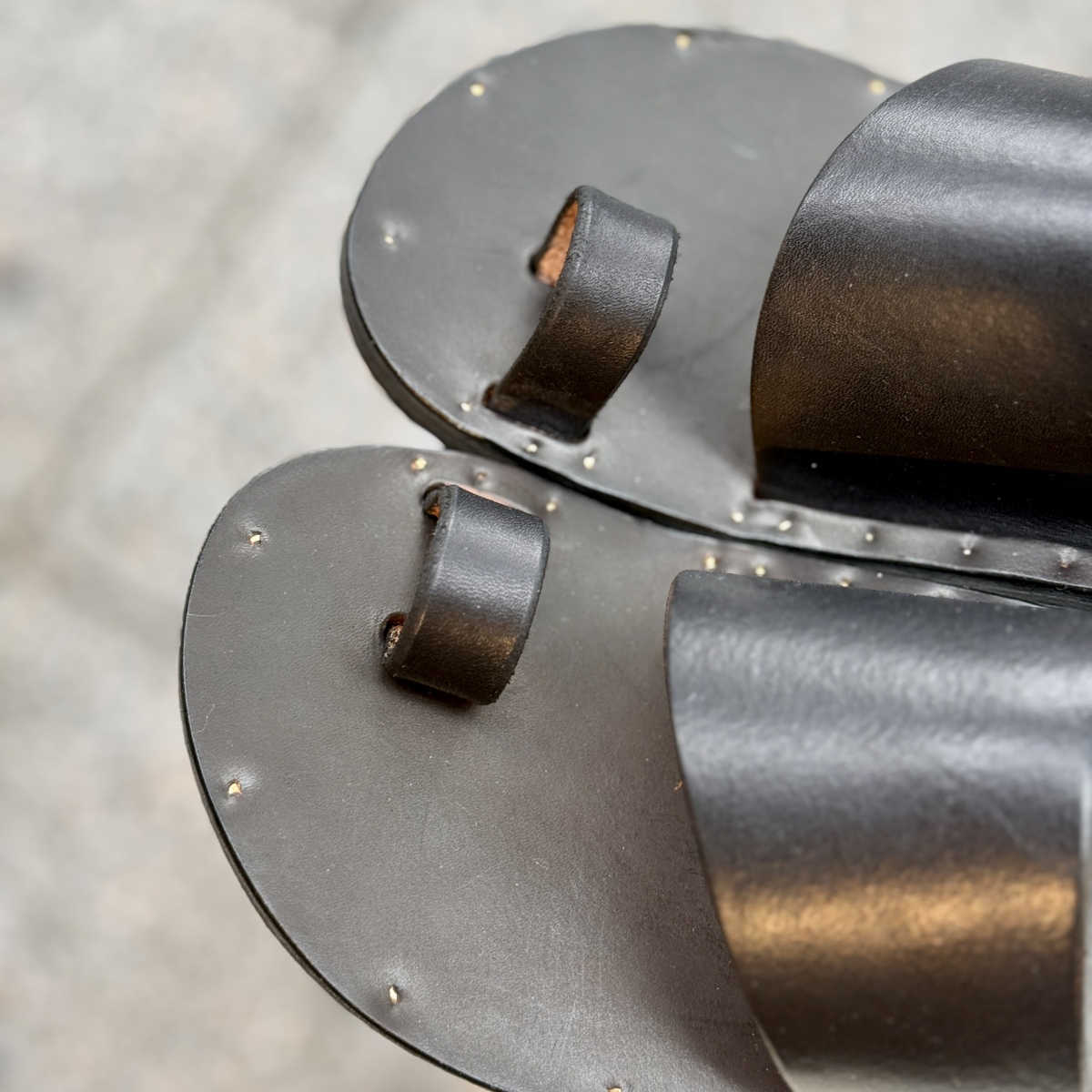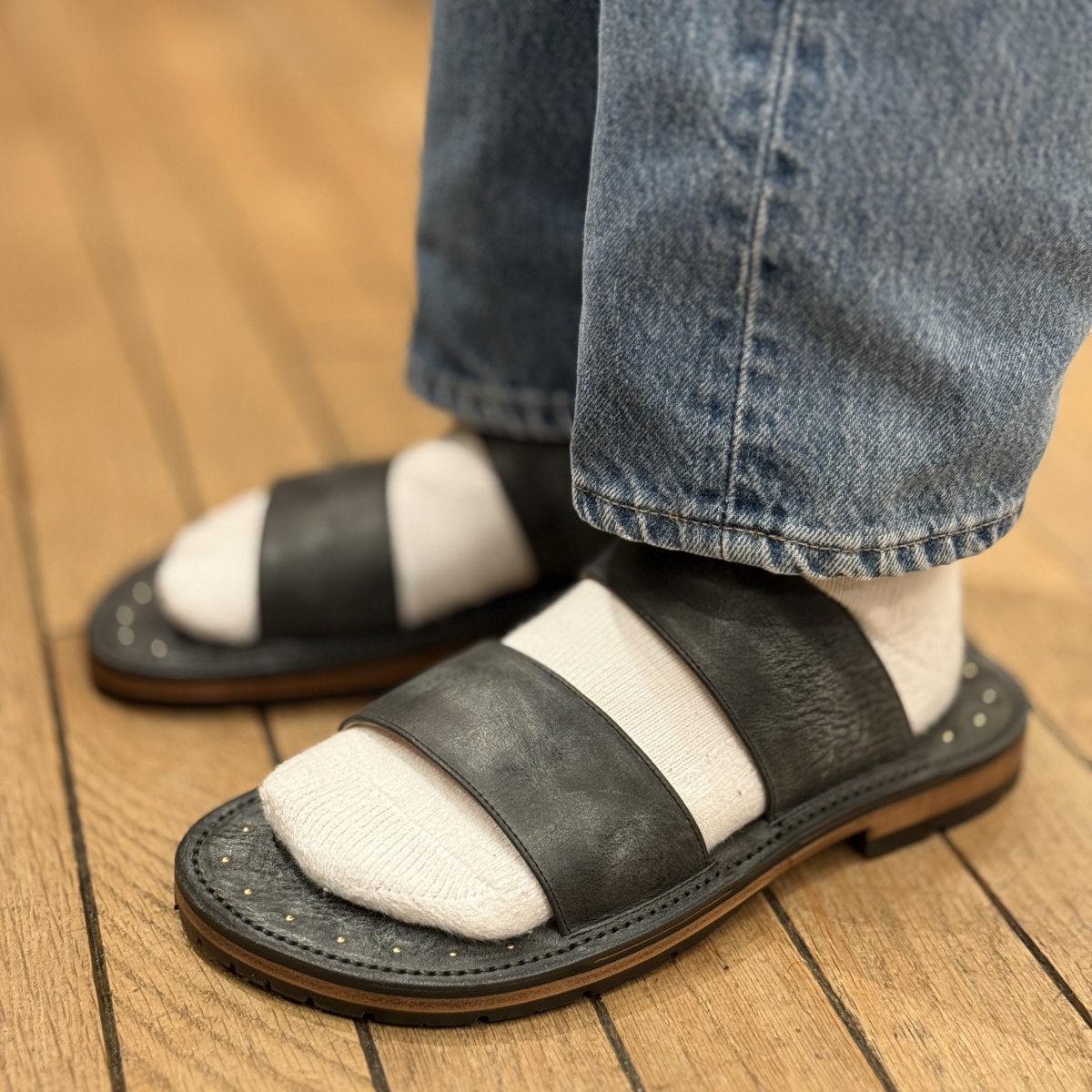使い込む事によって、表面のワックスが徐々に黒さと艶に変化していくので、経年変化も楽しめるサンダルです。