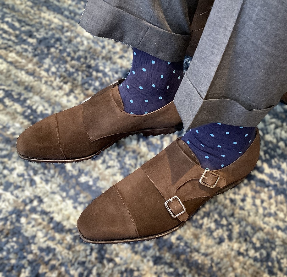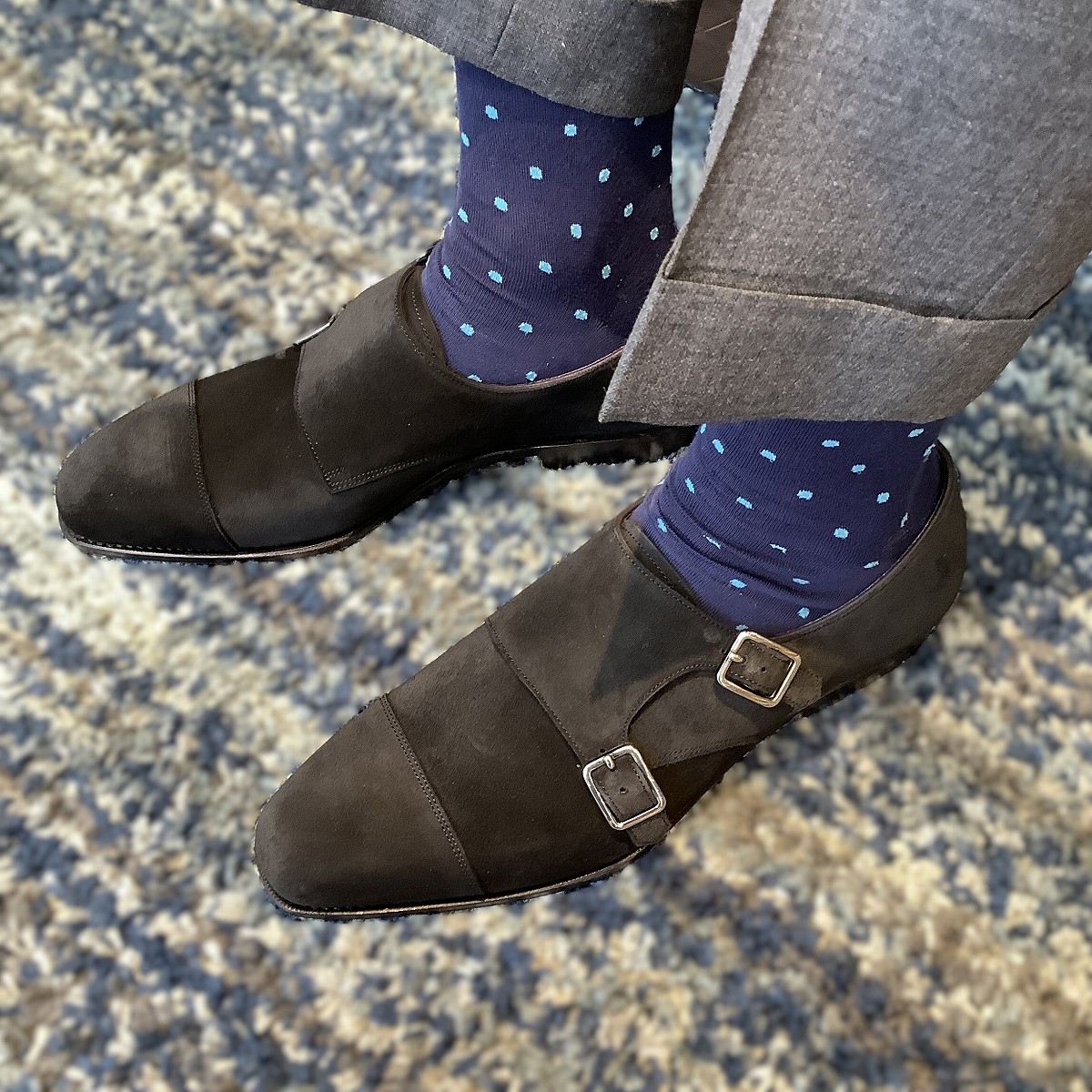 ダークブラウンスエードはどの様なコーディネートでも合わせやすく、