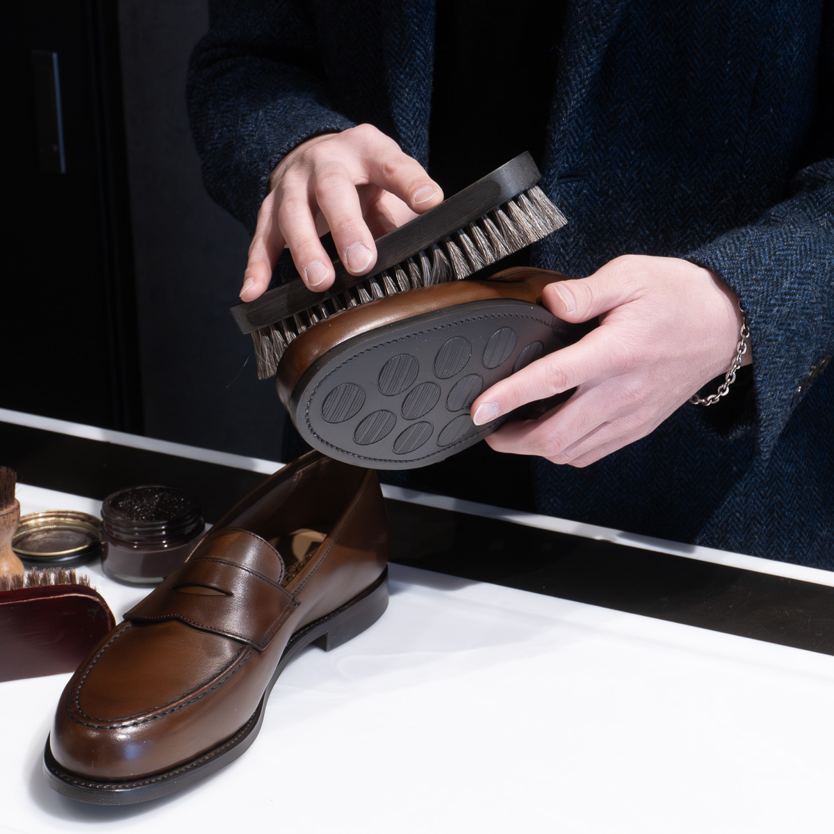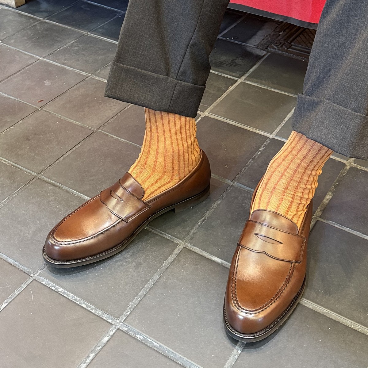 スムースレザーならではのしっとりとした光沢感に加え、履き込むほどに足に馴染み、自然なシワや柔らかな艶が生まれます。時間とともに表情を変えていく様は、まさに革靴ならではの“育てる楽しみ”といえるでしょう。