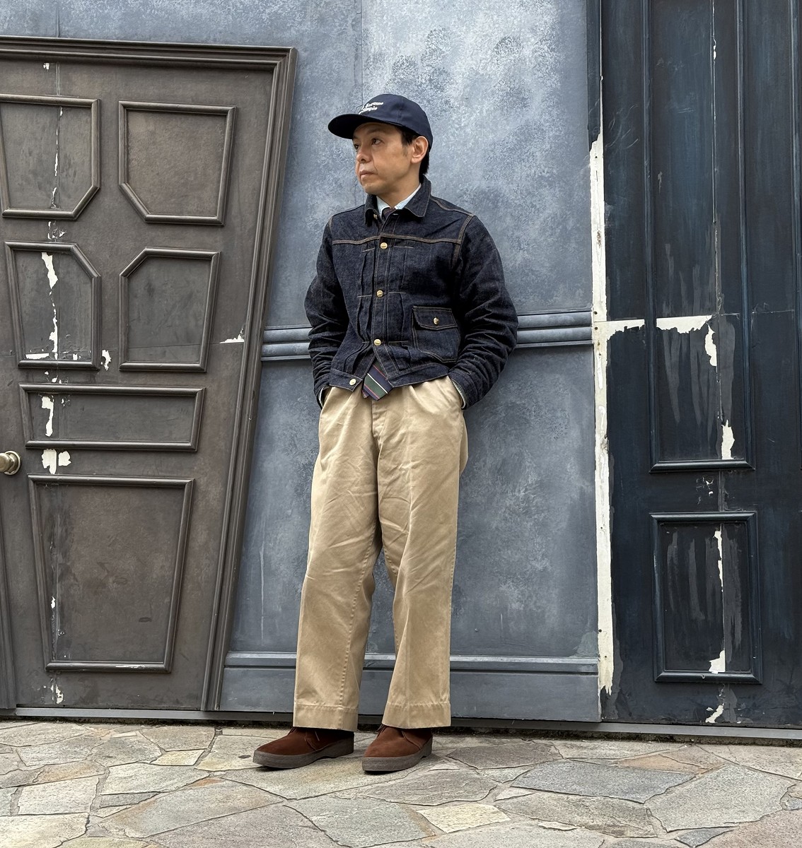 今回のコーディネートはデニムジャケット×USARMYの41カーキ。