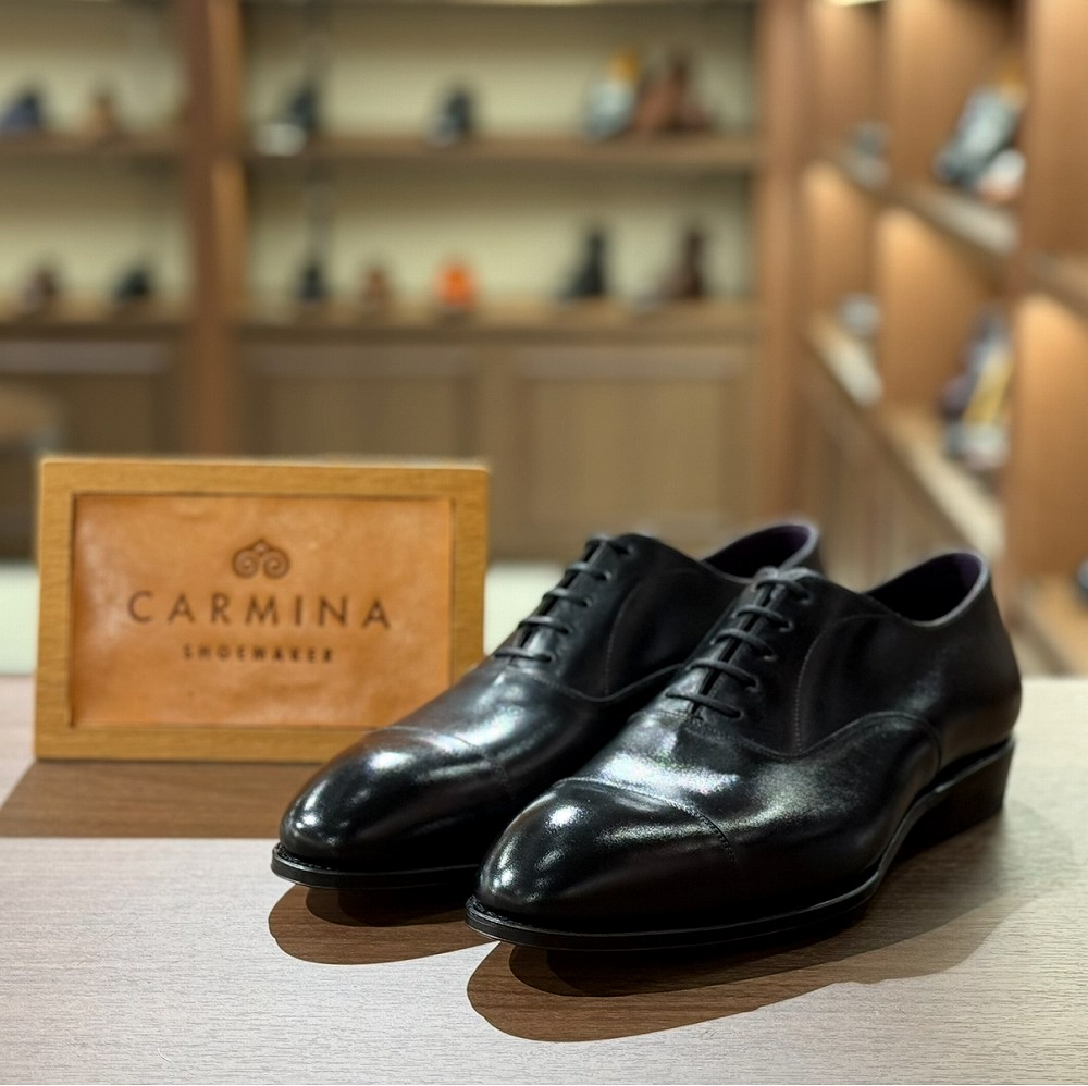 カルミーナらしいメリハリの利いたシルエットが特徴のラストINCAを使用したストレートチップ。