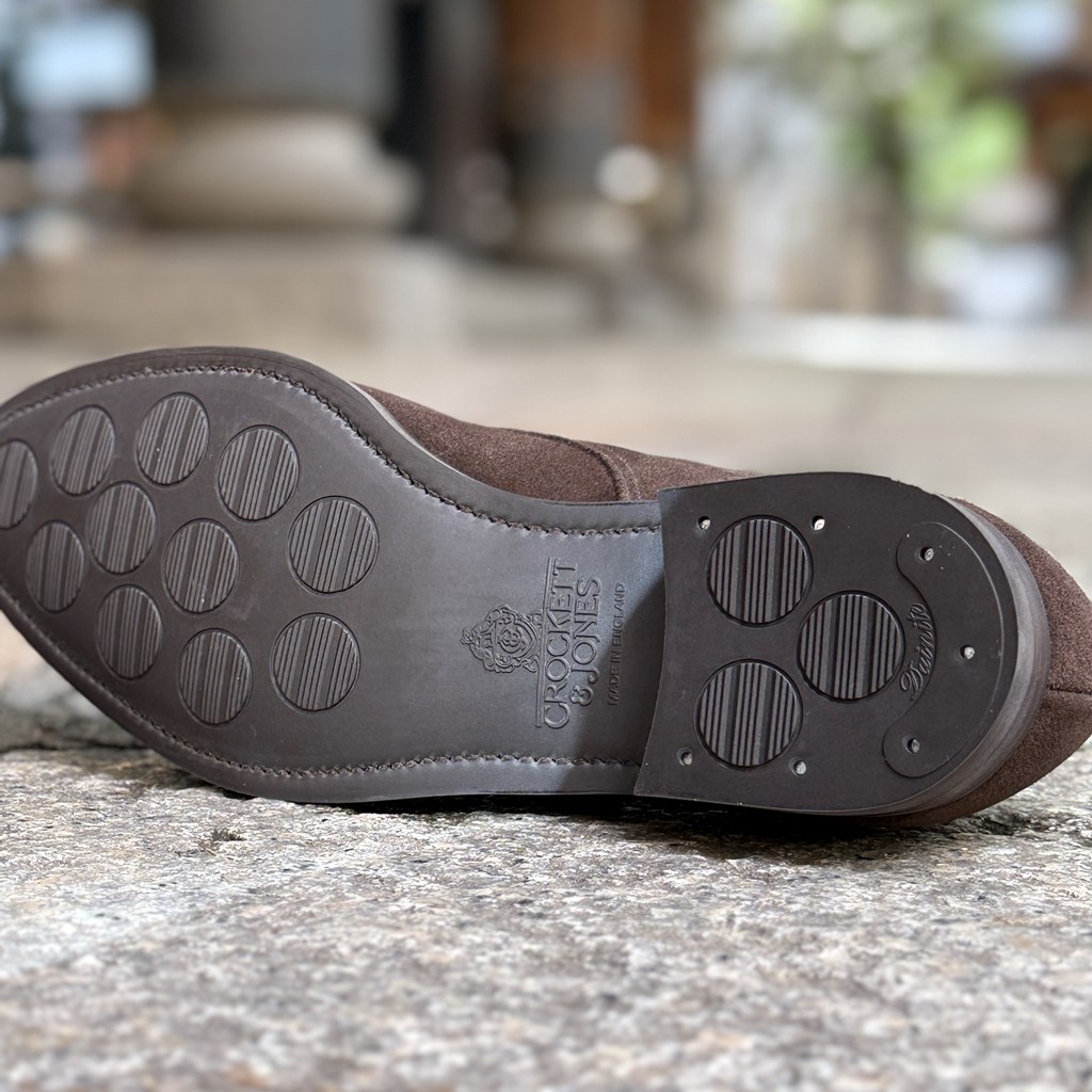 美しい発色と風合いのクロケットのダークブラウンスエード