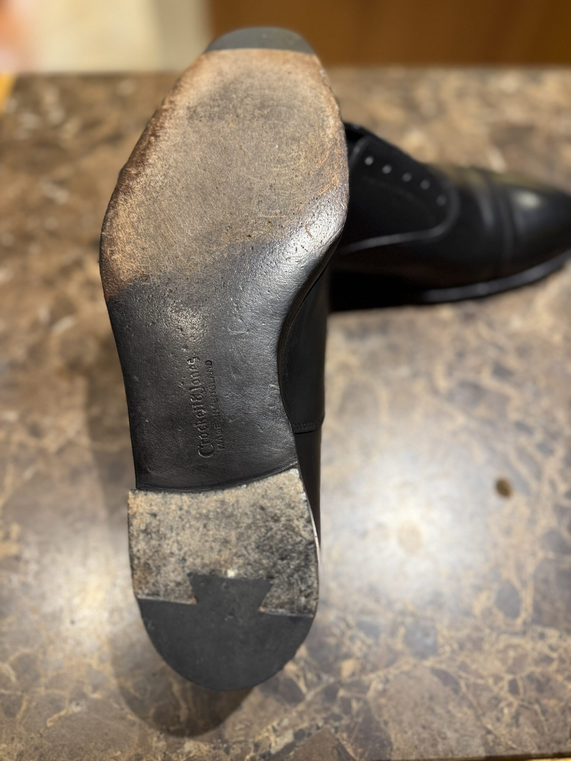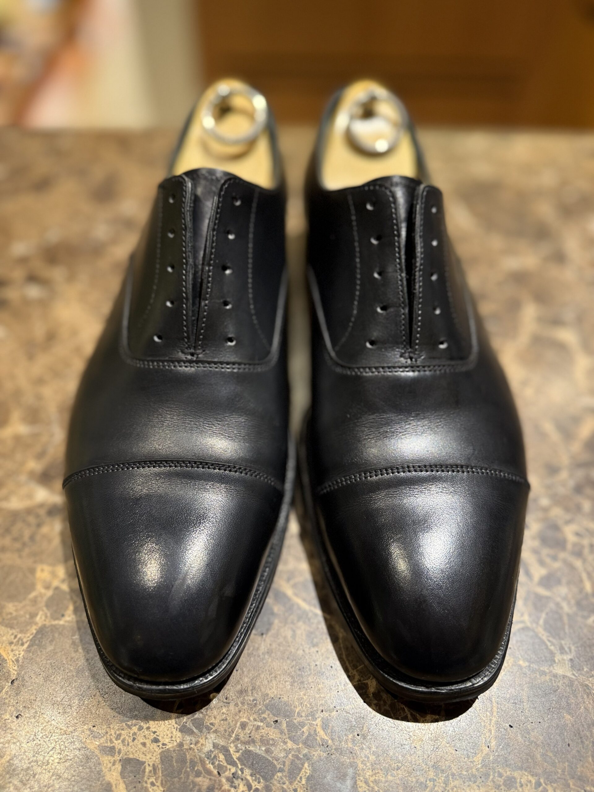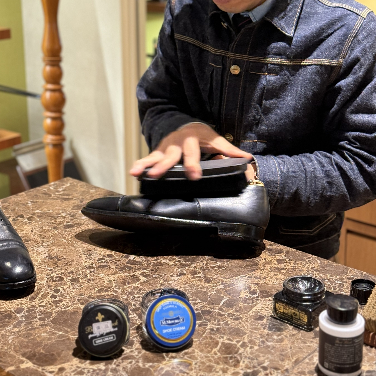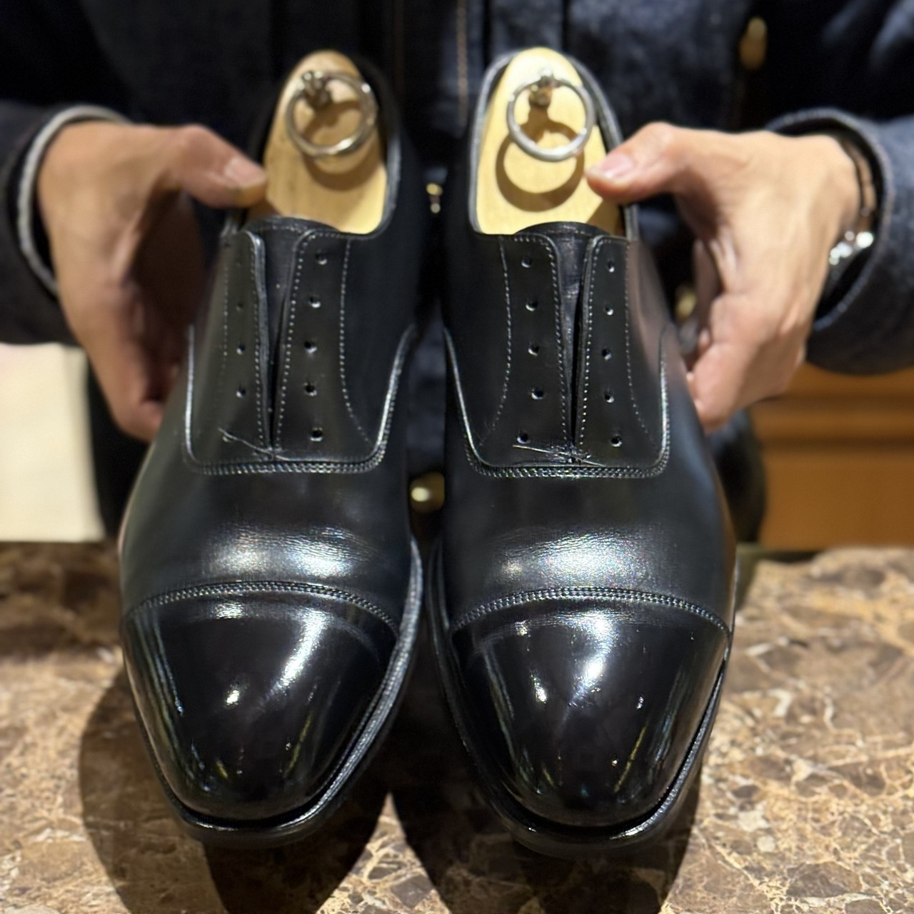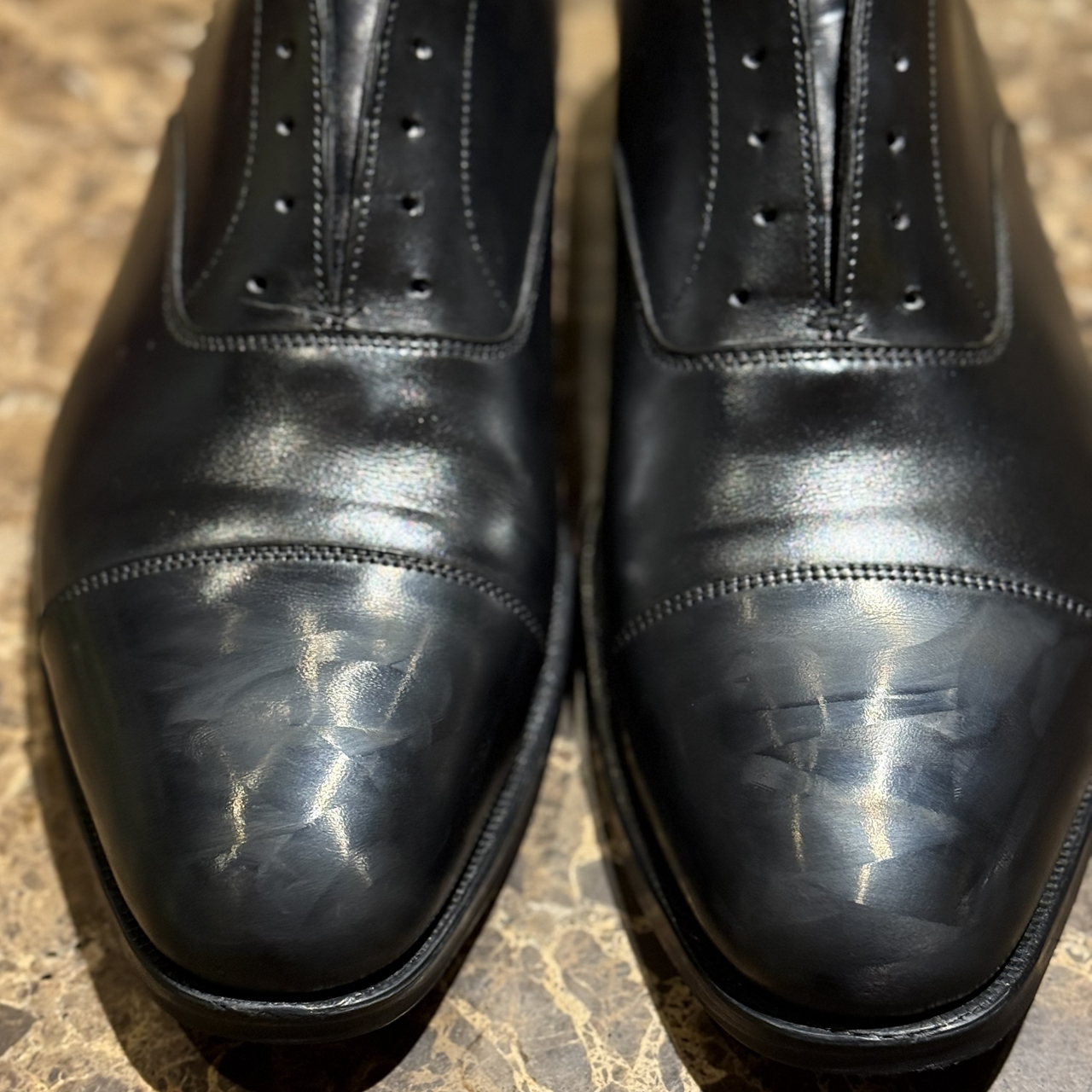 今回はお客さまがビジネス用として使用しているお靴を鏡面磨きまで行いました。