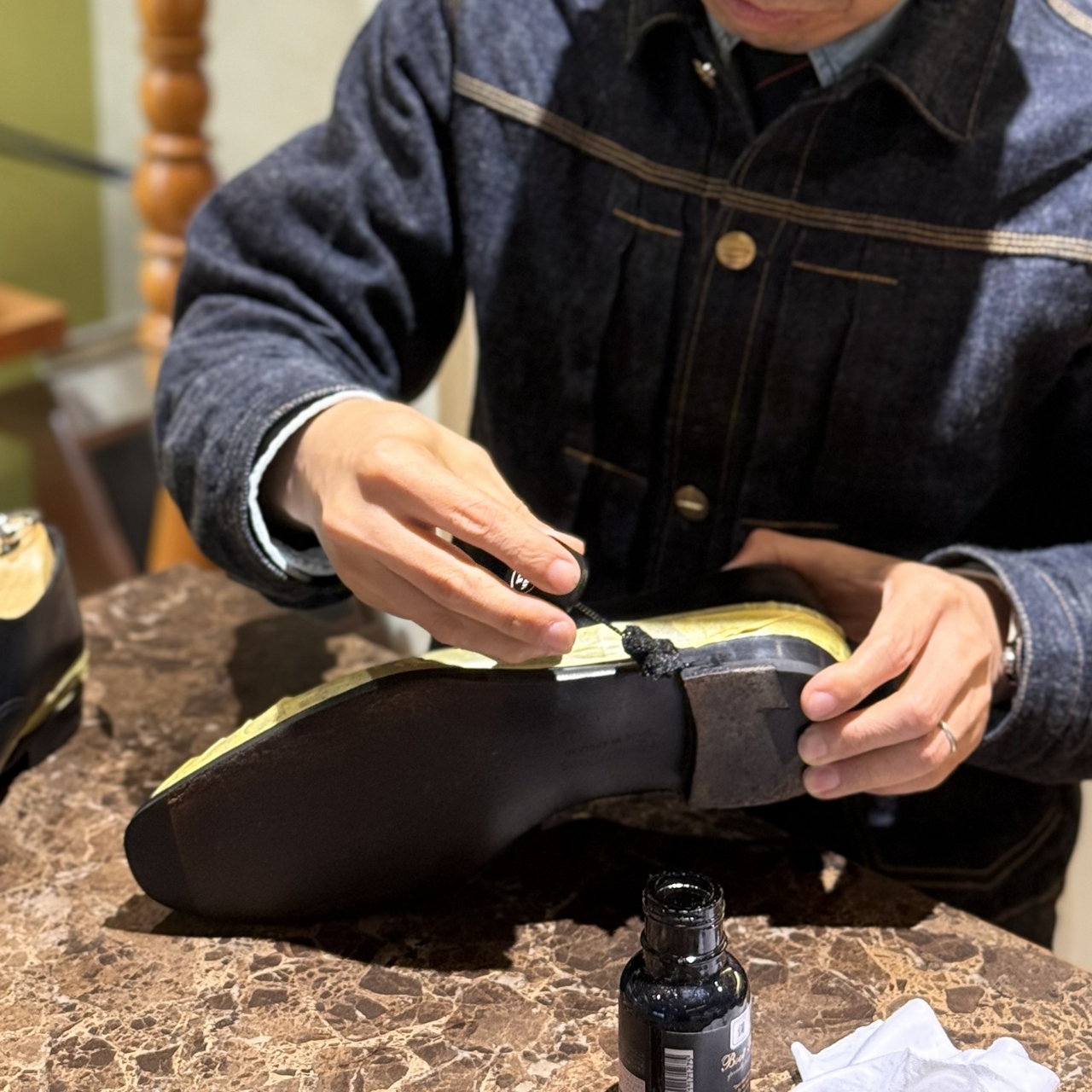 ・アウトソールにクリームを入れ栄養を与えています。(ソールコンディショナー使用)