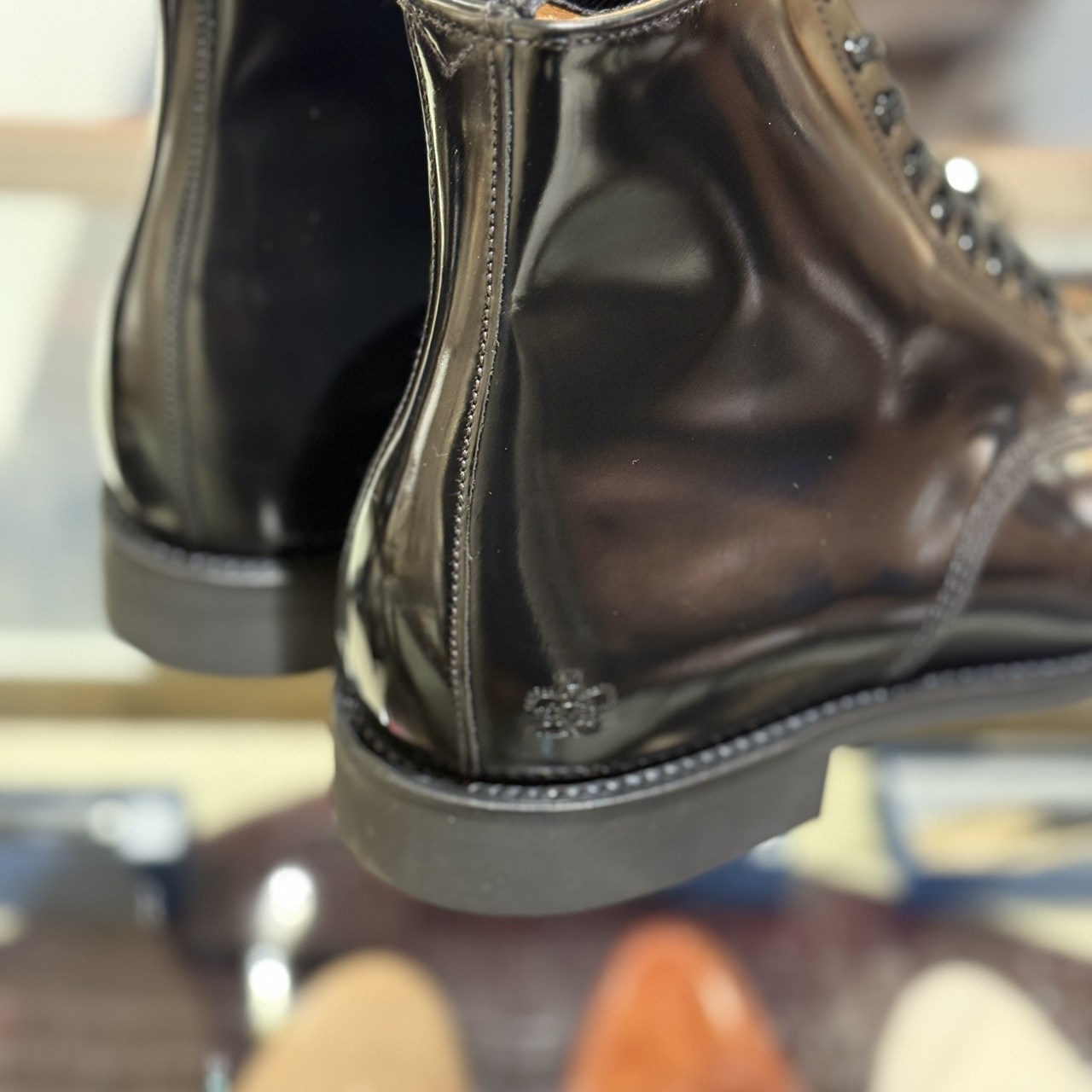 艶やかで耐久性に優れたポリッシュドレザーを贅沢に使用することで、その魅力は一層引き立ちます。これにより、単なる頑丈なブーツにとどまらず、上品さと実用性を高次元で融合。
