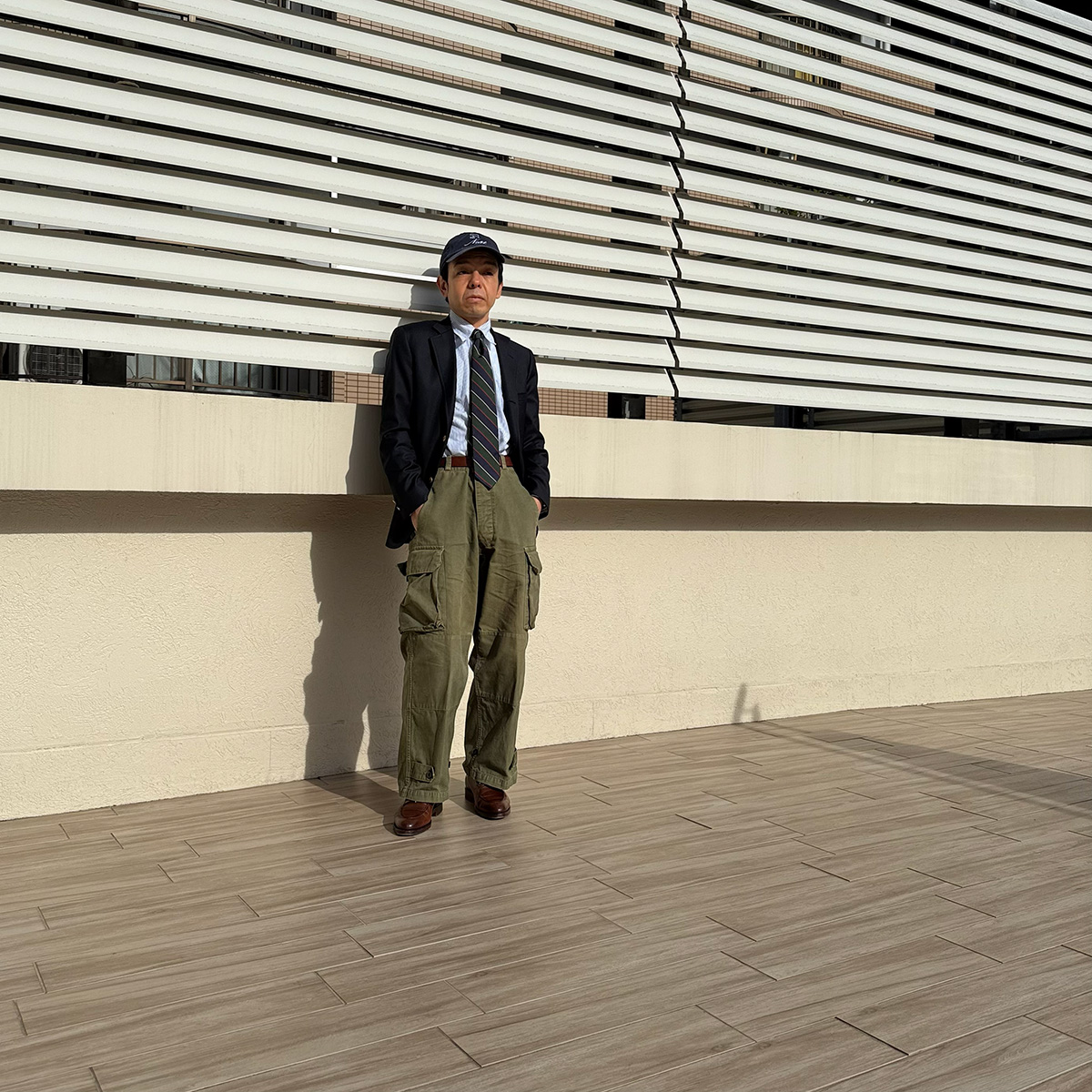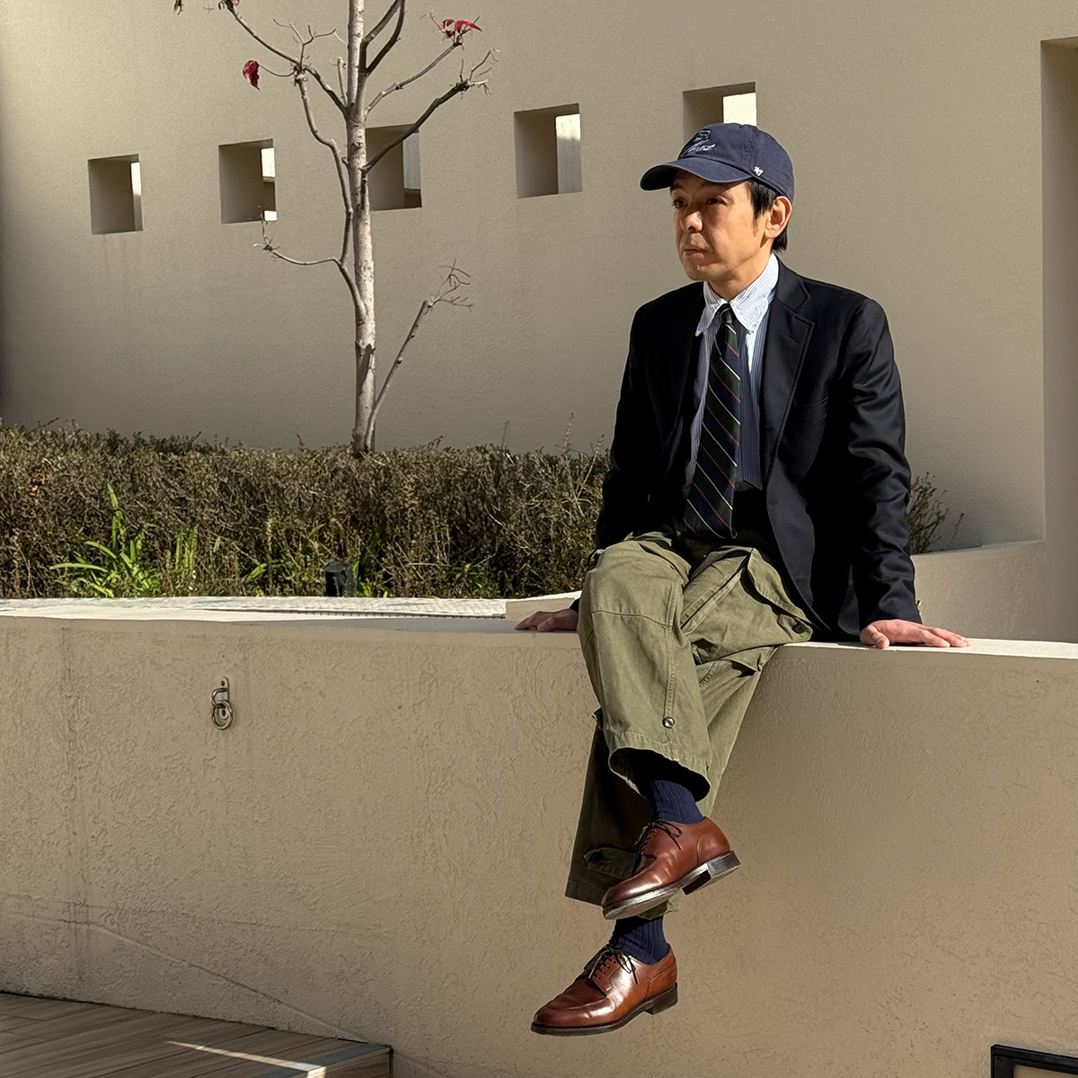 今回のコーディネートも、好きな靴を好きな服で自由に組み合わせています。最近はTPOにとらわれず、自由にファッションも楽しんでいます。