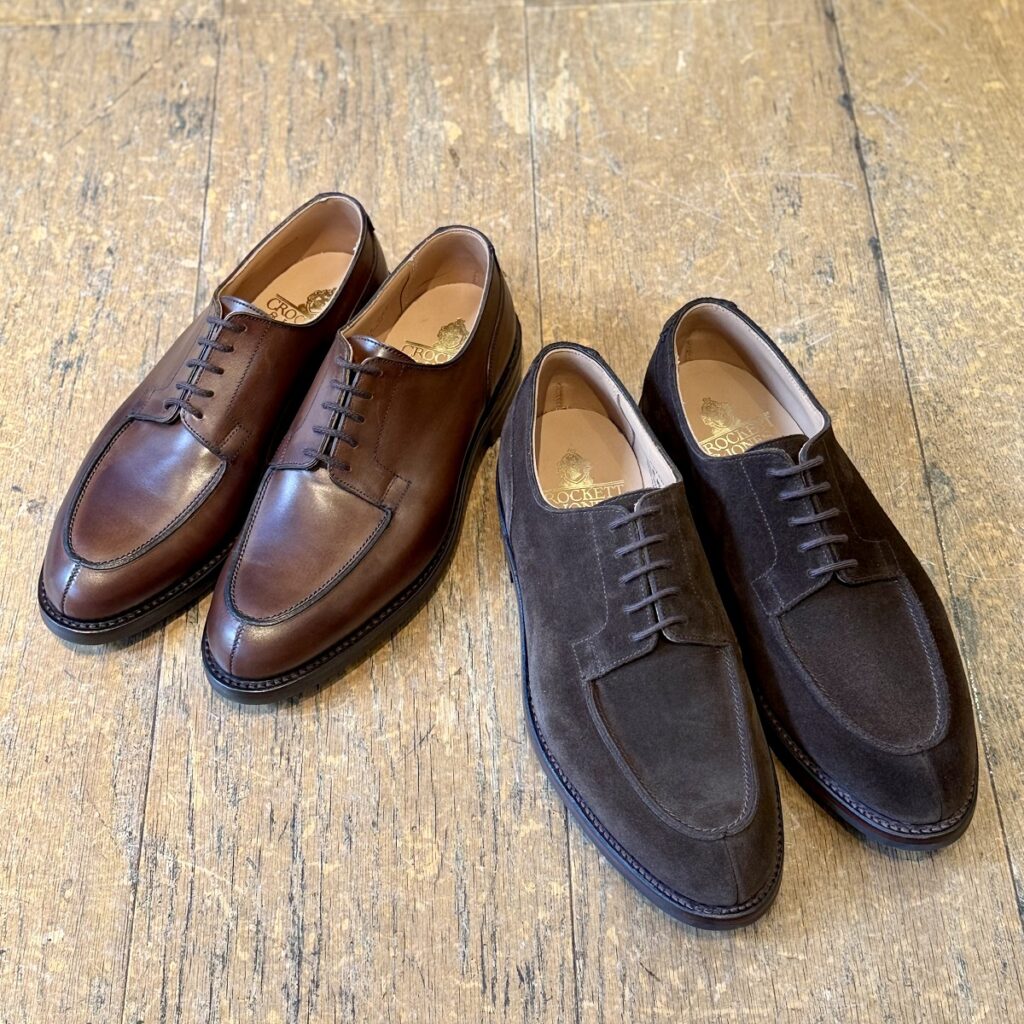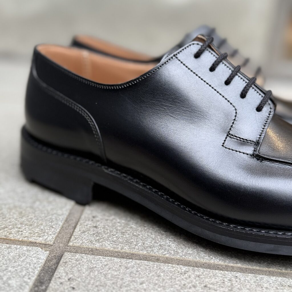 店内では、イギリスの伝統的なシューメーカーである【クロケット&ジョーンズ】、ミリタリー由来のタフな靴づくりで知られる【サンダース】など、英国の名門ブランドを中心に、スペイン発の美しい木型と仕立てが魅力の【カルミーナ】、クラシックと個性を融合させた【グレンソン】など、ヨーロッパを代表する上質な革靴ブランドを取り揃えています。